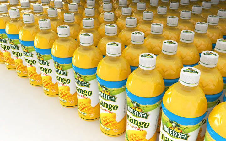 2、好的包裝不僅要要重視對消費(fèi)者的刺激色彩的使用,也要注意識別顏色的指導(dǎo)作用。不同成份的產(chǎn)品及其包裝也反映在不同的顏色上。本產(chǎn)品瓶貼做到了色彩與果汁成份相統(tǒng)一。芒果汁的包裝瓶帖以橙色系為主,藍(lán)莓汁以紫色調(diào)為主,這樣更容易做到對產(chǎn)品功能的體現(xiàn)和區(qū)分,有助于增強(qiáng)消費(fèi)體驗(yàn)感。