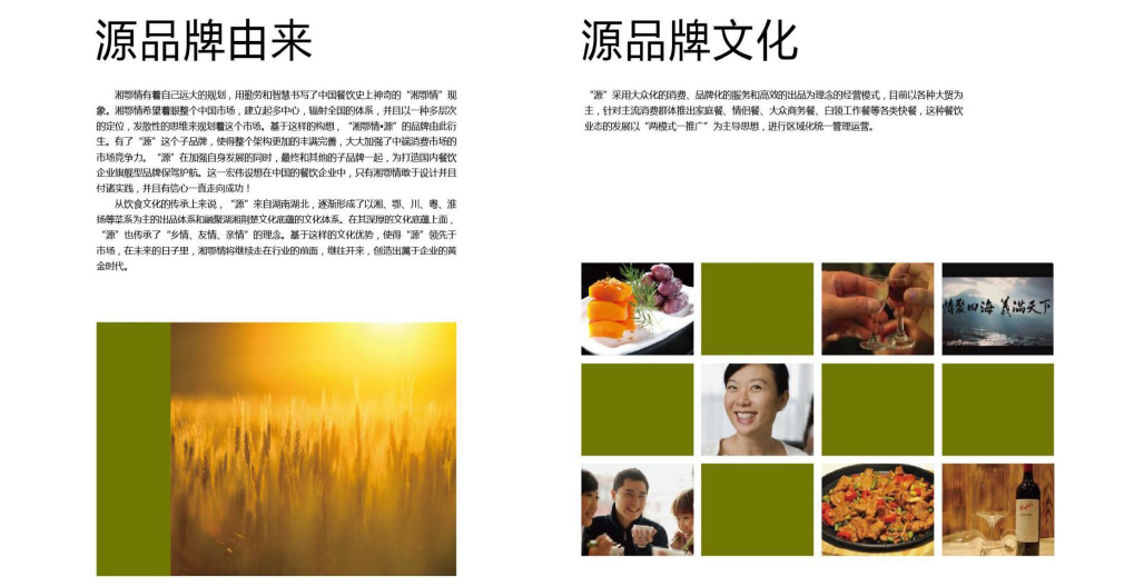 通過對湘鄂情.源的品牌研究,美御從整體的形象的策劃開始著手,給“源”制定了最合理的品牌可持續發展計劃。塑造品牌形象,促成品牌認知,最終實現“源”品牌的發展之路。我們采用黑白色調為主的經典懷舊的組合風格,同事結合簡約時尚的元素,用清晰的綠色裝點,力在體現健康、綠色、有機無害的飲食理念,整體給人以簡潔、時尚、大方的感覺。