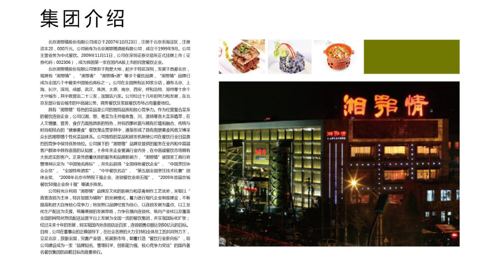 北京湘鄂情餐飲管理有限公司前身為北京湘鄂情酒樓有限公司,成立于1999年9月。公司主營業務為中式餐飲。2009年11月11日,公司在深圳證券交易所正式掛牌上市(證券代碼:002306),成為我國第一家在國內A股上市的民營餐飲企業。源作為國內首家民營企業餐飲上市公司旗下大眾消費品牌,以簡練時尚元素體現源餐廳定位于大眾消費品牌。