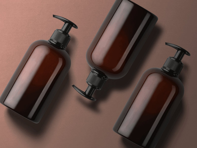 圓形棕色塑料瓶帶壓泵包裝設計,化妝品包材設計,用戶化妝品包裝的泵頭產品,適合做潔面,洗手液,洗發水等產品