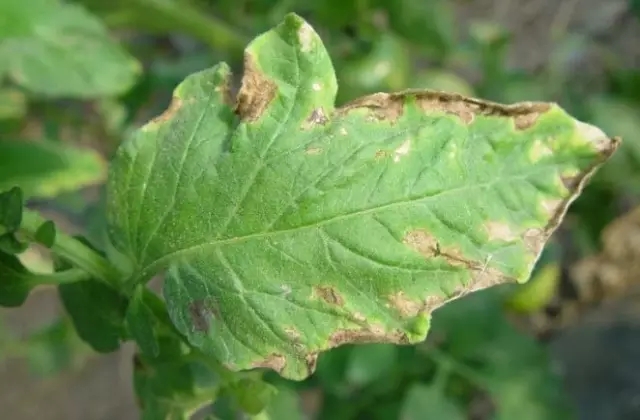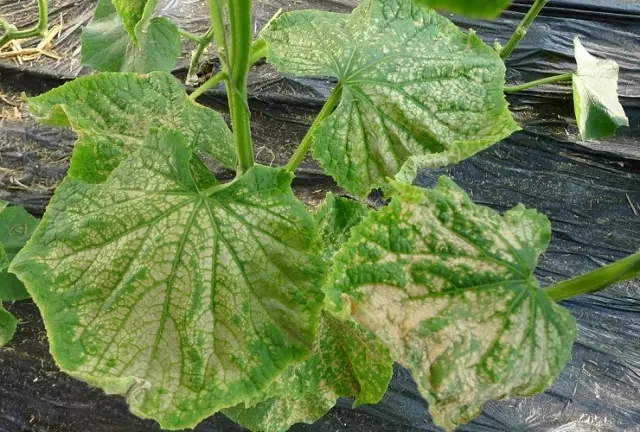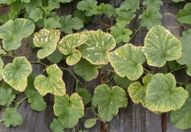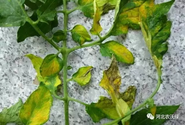 棚室內(nèi)施用大量生餅肥、有機(jī)糞肥后,由于溫度較高,在腐解過程中會(huì)產(chǎn)生大量硫化氫,硫化氫在空氣中進(jìn)一步氧化生成二氧化硫。二氧化硫氣體由氣孔進(jìn)入葉片,再溶解浸潤(rùn)到細(xì)胞壁的水分中,使葉肉組織失去膨壓而萎蔫,產(chǎn)生水漬斑,最后變成白色,在葉片上出現(xiàn)界限分明的點(diǎn)狀或塊狀壞死斑,嚴(yán)重時(shí)斑點(diǎn)可連接成片,造成全部葉片枯黃。