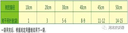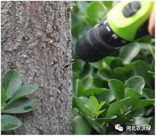 (2)、根據(jù)樹體大小適當(dāng)增減用藥量,具體用量視樹勢而定,胸徑小于5cm的樹木不推薦使用。