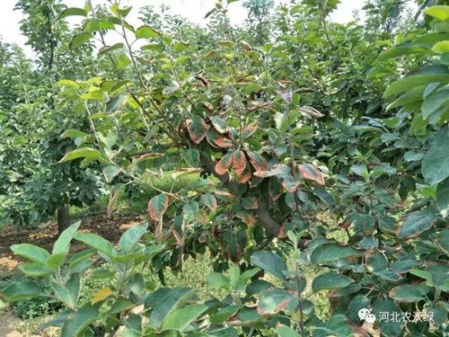 3、缺素。在蘋(píng)果樹(shù)生長(zhǎng)過(guò)程中,由于土壤中氮、鈣、鎂、鐵等元素缺乏或因土壤板結(jié)導(dǎo)致樹(shù)體對(duì)營(yíng)養(yǎng)元素的吸收受到限制時(shí),均易引起葉片黃化,只是外觀癥狀不同而已,一般缺氮時(shí)新梢生長(zhǎng)細(xì)而弱、葉小,淡綠色或黃色,嚴(yán)重時(shí)會(huì)引起落葉和落果;缺鈣,在小枝的嫩葉上發(fā)生褪色及壞死斑點(diǎn),葉子邊緣及葉尖有時(shí)向下彎曲,褪色部分顏色先呈黃綠,一兩天內(nèi)變成黃褐色;缺鐵時(shí)近新梢頂部的葉片完全變成草綠色或黃色,中下部葉片葉脈成綠色,有些葉焦邊,并逐漸開(kāi)始脫葉。缺鎂時(shí)葉片失綠,新梢基部成熟葉片的葉脈間出現(xiàn)黃綠色,會(huì)迅速擴(kuò)大到頂部,基部葉片夏末脫落,頂部葉片仍保留;嚴(yán)重缺乏時(shí)植株干死;葉子小,最終變脆,邊緣向上卷曲;嫩葉較弱小,易受菌類(lèi)侵襲,提前落葉(但新稍頂端的葉則不脫落),一般缺鎂時(shí)在八月中旬就開(kāi)始落葉,嚴(yán)重缺鎂時(shí)則在六月中、下旬便開(kāi)始落葉。蘋(píng)果樹(shù)缺鎂癥狀比較特殊,在缺鎂初期,葉片還未出現(xiàn)壞死,好像氮素充足似的,表現(xiàn)為深綠色,因此一定要認(rèn)真觀察,萬(wàn)萬(wàn)不可判斷錯(cuò)誤。對(duì)幼齡的蘋(píng)果樹(shù),植株頂部嫩葉逐漸失綠,以后新梢基部成熟葉片的葉脈間出現(xiàn)淡綠或灰綠色斑點(diǎn)。這些斑點(diǎn)很快就擴(kuò)散到葉子邊緣,幾個(gè)小時(shí)后,葉子即變?yōu)榈稚粌商旌蠹淳砜s脫落。落葉從老葉開(kāi)始,以后迅速擴(kuò)展到頂端,最后只剩下薄而淡綠的葉子。