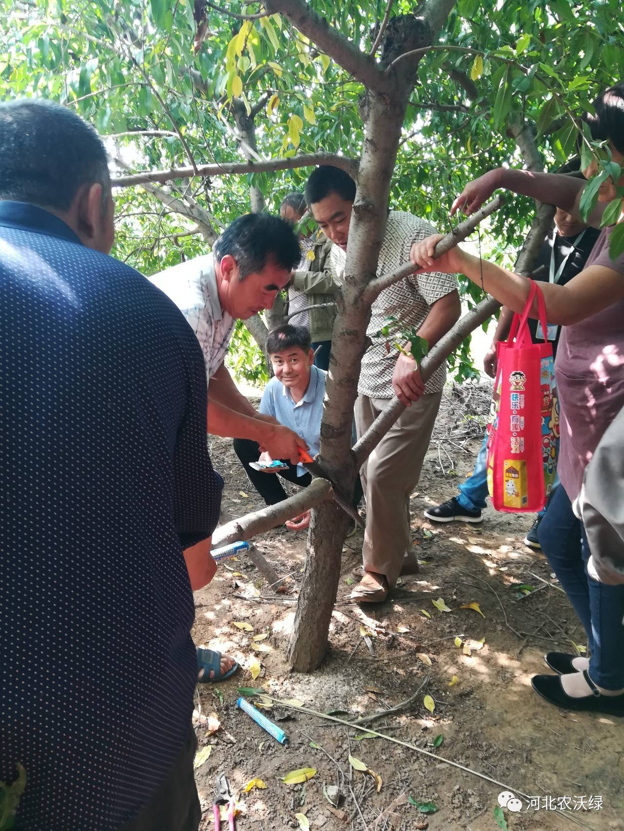 果農(nóng)在劉所長的指導(dǎo)下對果樹進(jìn)行修剪。