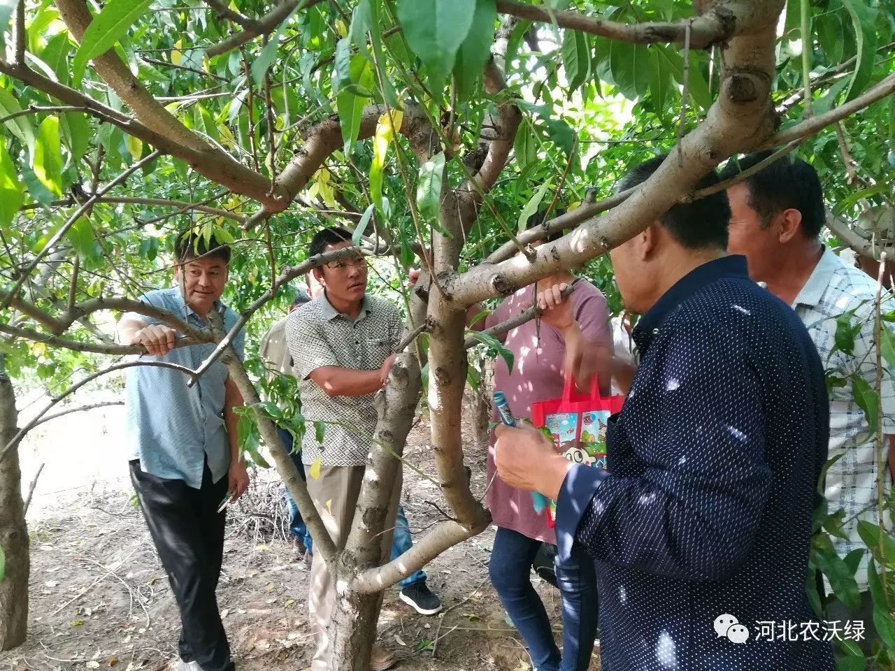 通過觀察當(dāng)?shù)毓智闆r劉所長指出了當(dāng)?shù)毓r(nóng)在管理上出現(xiàn)的問題,不注重秋施基肥,桃樹剪枝管理不好,樹形不好會影響果實(shí)品質(zhì)。并現(xiàn)場指導(dǎo)果農(nóng)怎樣管理果樹。