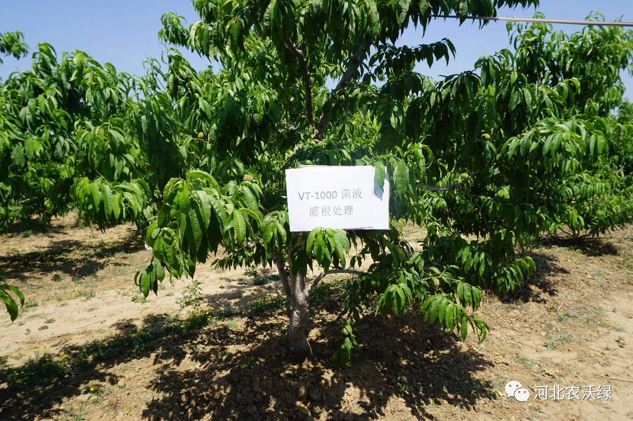 后來公司農(nóng)技師推薦李毅成他們使用農(nóng)沃綠VT-1000菌液灌根補救,后期施用農(nóng)沃綠生物有機肥改良土壤。 農(nóng)沃綠VT-1000菌劑是應用中國農(nóng)業(yè)大學技術,主要有光合菌、乳酸菌、酵母菌、發(fā)酵菌系的絲狀菌、放線菌等近80個菌株構成,菌種來源廣泛,復合程度高,每毫升不少于10億活菌,使用后大量有益菌在作物根系形成嚴密的防護網(wǎng),對根腐病等土傳病害有很好的防治作用。為驗證產(chǎn)品效果,公司農(nóng)技師建議李毅成先選幾株發(fā)病嚴重的樹做實驗。