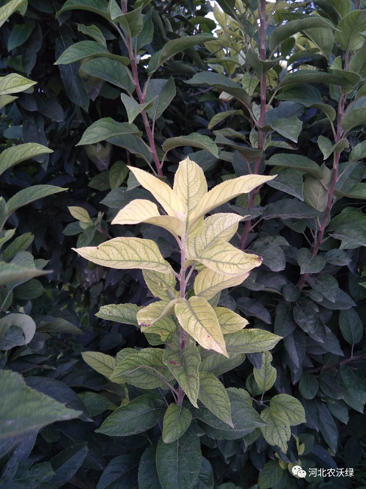 看下圖這是使用農(nóng)沃綠VT營養(yǎng)治療液給果樹輸液治療10天后拍的圖片,果樹的新梢顏色翠綠,老葉的葉片顏色也有好轉(zhuǎn)。
