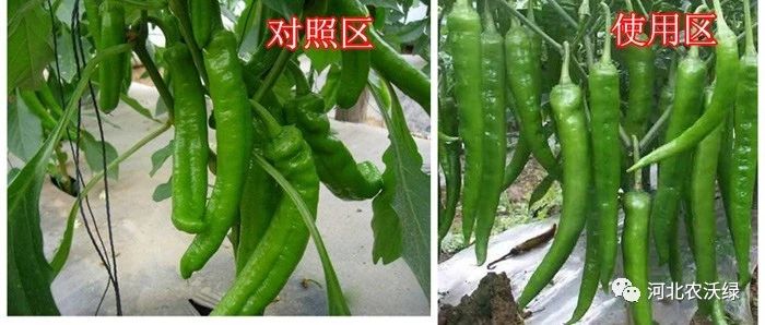 沖施農沃綠含腐殖酸水溶肥的辣椒果面平整有光澤,商品性好!