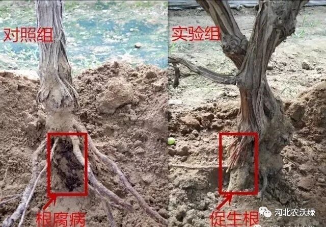 果樹根腐病,使用農(nóng)沃綠微生物菌劑灌根后生出新根
