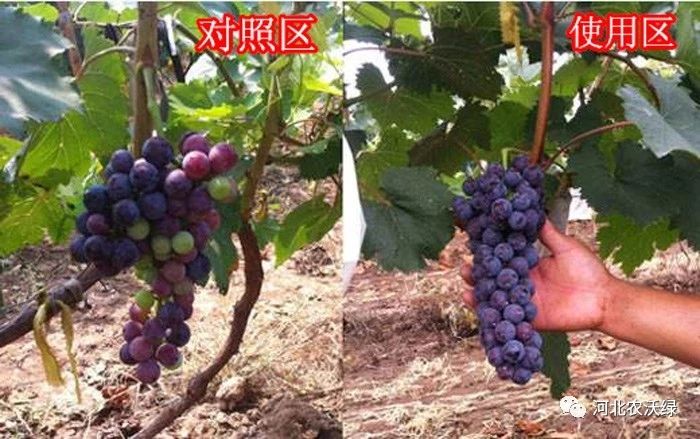 使用農(nóng)沃綠含腐殖酸水溶肥與其他肥料對比:葡萄坐果率高、上色均色,果實(shí)飽滿