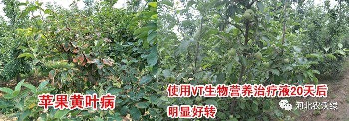 蘋果黃葉病,使用VT生物營養(yǎng)治療液20天后明顯好轉(zhuǎn)