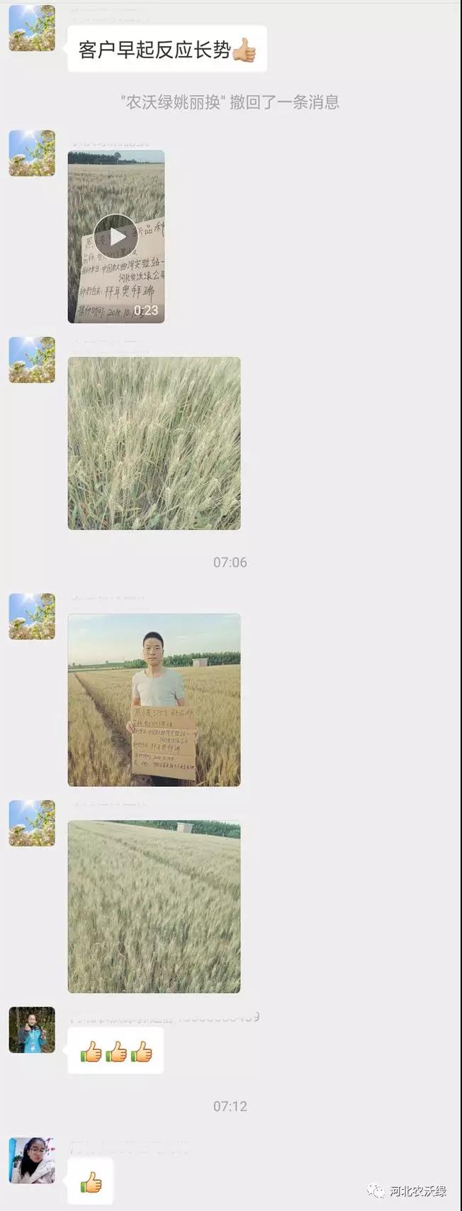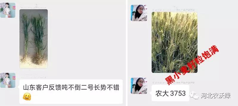 近期,小麥即將成熟,由我們中國農(nóng)業(yè)大學(xué)曲周實(shí)驗(yàn)站—河北農(nóng)沃綠生產(chǎn)銷售的噸不倒2號小麥、農(nóng)大3753黑小麥等均接到客戶的反饋,病害少,穗大、顆粒飽滿、抗倒能力強(qiáng)、長勢好,獲得客戶的一致好評;下面我們一起來看下客戶的反饋,感受下豐收的喜悅。