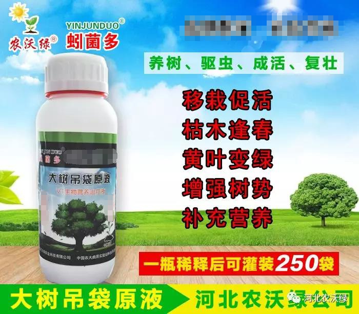 夏季,是樹木生長旺盛季節(jié),對營養(yǎng)的需求較大,而新栽樹木自身制造營養(yǎng)的能力較差,此時(shí),我們可通過人為補(bǔ)充,滿足樹木生長需求。使用“農(nóng)沃綠大樹吊袋液”進(jìn)行輸液,增強(qiáng)樹勢,補(bǔ)充營養(yǎng)。