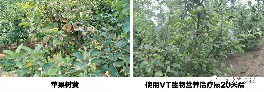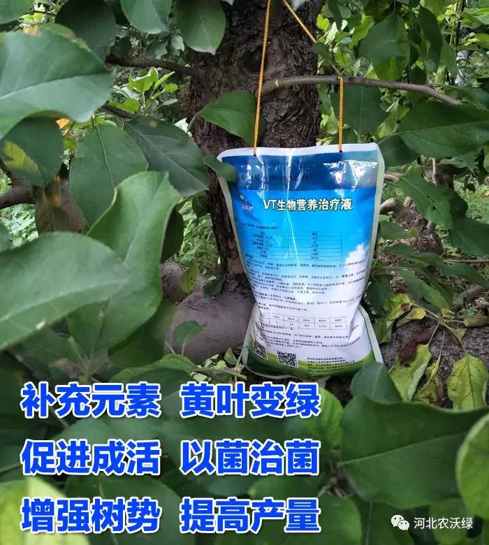 缺素引起的黃化,可使用農(nóng)沃綠VT生物營(yíng)養(yǎng)治療液給大樹輸液治療。迅速補(bǔ)充各種大中微量元素,增強(qiáng)樹勢(shì),