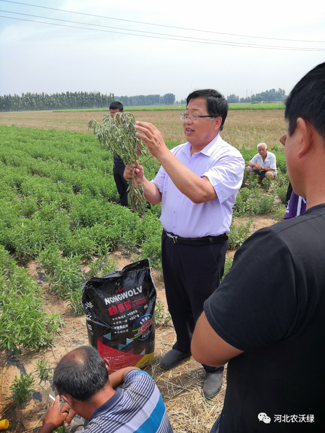 田間觀察中有一戶種植的甜葉菊跟其他地塊相比較,長勢很好,經(jīng)詢問:“底肥施用了農(nóng)沃綠生物有機(jī)肥,植株健壯,基本沒有死棵現(xiàn)象,病蟲害很少發(fā)生!彼卫辖榻B到。宋老是一位新型農(nóng)民,別看白發(fā)蒼蒼,對農(nóng)作物種植很有研究,在當(dāng)?shù)匾灿杏绊懥,早在前幾年宋老就對生物有機(jī)肥有深刻的認(rèn)識,正好離我們公司又很近,一來二去就熟悉了,公司領(lǐng)導(dǎo)也經(jīng)常跟宋老一起為農(nóng)戶解答種植難題。