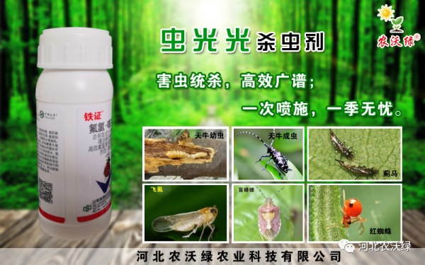 病害防治可使用農(nóng)沃綠微生物菌劑灌根或沖施,產(chǎn)品富含80多種有益微生物菌,可有效抑制有害菌的滋生,防治病害的發(fā)生,同時(shí)微生物菌劑對(duì)果樹根腐病等根部病害有特效;害蟲防治可使用農(nóng)沃綠蟲光光防治,高效廣譜。