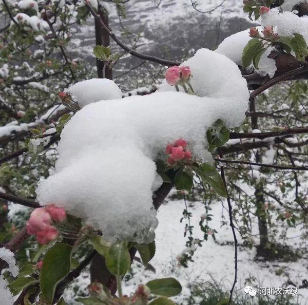 比如2018年4月8日河北發(fā)生的倒春寒,造成了我區(qū)蘋果、核桃、桃、梨等花和幼果受到嚴重的傷害,減產(chǎn)相當(dāng)嚴重,有的果園絕收。2020年4月10日我區(qū)部分果園蘋果花期遭遇大雪,4月23日部分果園又發(fā)生嚴重霜凍,造成蘋果花器子房變黑,好多果園沒了產(chǎn)量,就連葉子也遲遲不長。