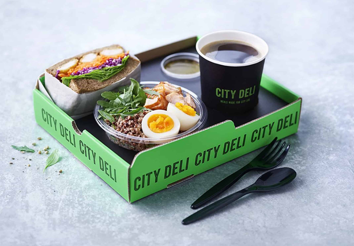 城市熟食店一店多用,既可以堂吃,也可以外帶,也可以外賣,能過實現(xiàn)更多的場景,對提高日銷售額有很大的幫助,店鋪品牌設(shè)計也是簡潔大氣,突出品質(zhì)感。