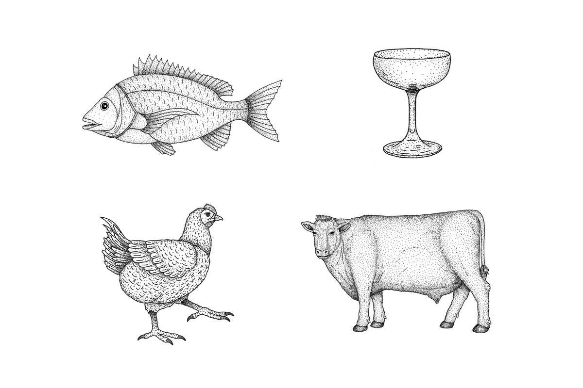 其中采用很多插畫,其風格讓人聯想到維多利亞時代的版畫,但更具現代感。這些插圖中加入了幽默元素,這使餐廳能夠更多地談論品牌文化的一面,而不會感到太枯燥。