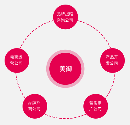 美御提供的服務(wù)包含了品牌戰(zhàn)略咨詢(xún),產(chǎn)品開(kāi)發(fā),營(yíng)銷(xiāo)推廣,品牌招商,電商運(yùn)營(yíng)五位一體